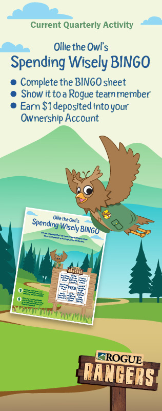 Rogue Ranger Badge Program – When you spend wisely for the things you need, save for your goals and give to worthy causes, you can earn a Ranger Badge to wear proudly! Plus, earn $5 into your Ownership Account when you complete all three challenges.